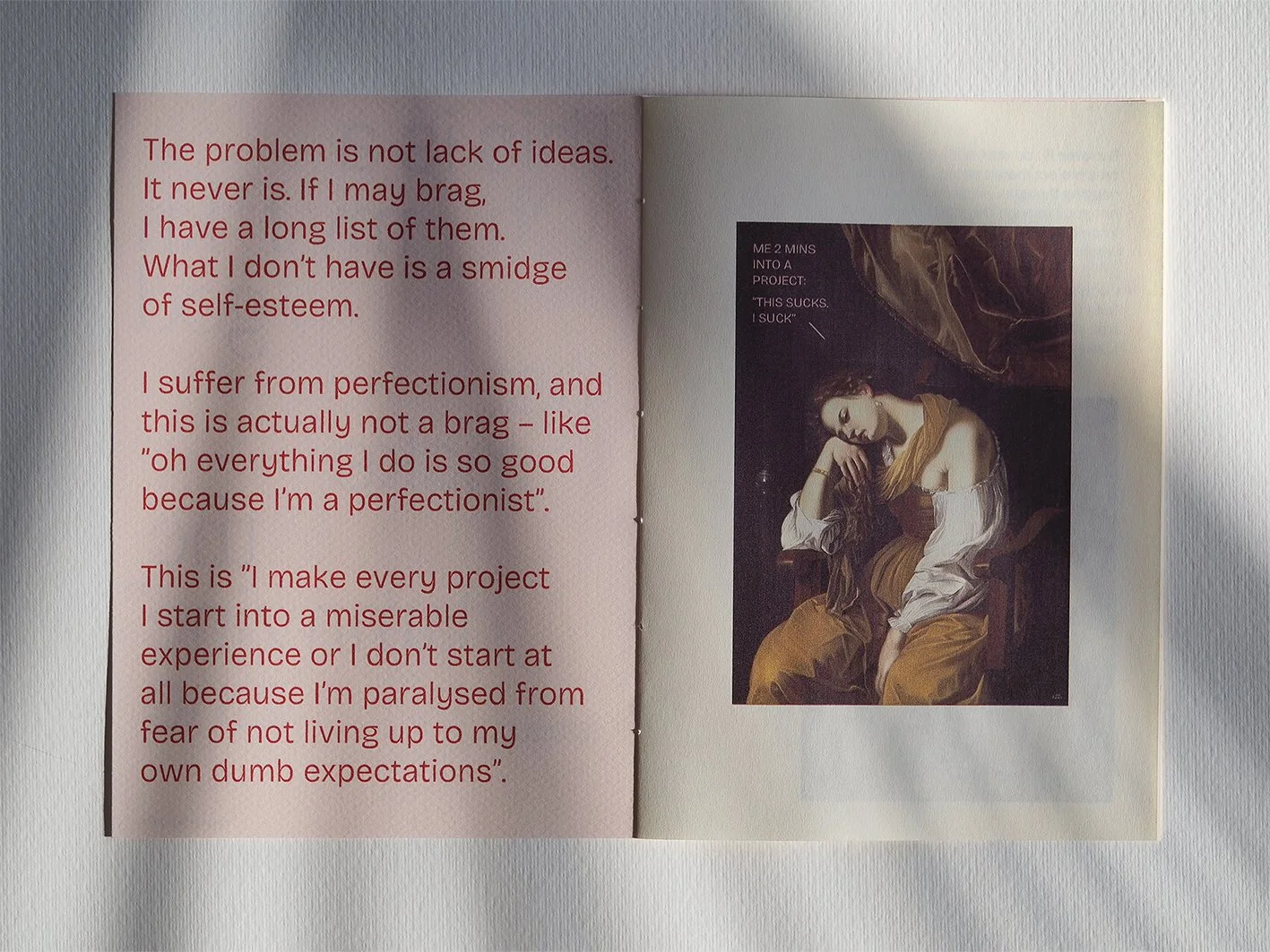 Det här är ett zine där jag bestämde mig för att leka med frustrationen över att inte kunna bestämma mig för vad jag skulle göra för zine.